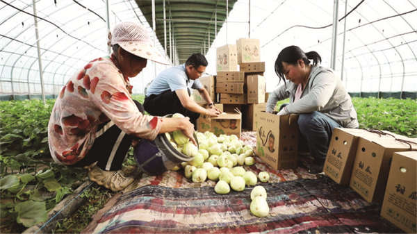 兴县的玉露香梨也喜获丰收。兴县兴华村,上千亩玉露香梨正准备销往全国各地。经过县委、县政府多年的扶持、推广与宣传,兴华玉露香梨早已打响了品牌,这几天上门订货的客商络绎不绝。村党支部书记白根提说:“按照目前的行情,1000亩玉露香梨可给全村带来300多万元的收入,人均增收5000元。”在县、乡两级政府的引导下,为了做强玉露香梨产业,今年村里还建成了水果存储冷库和梨汁生产线,进一步增强了村民做好这一产业的信心和底气。