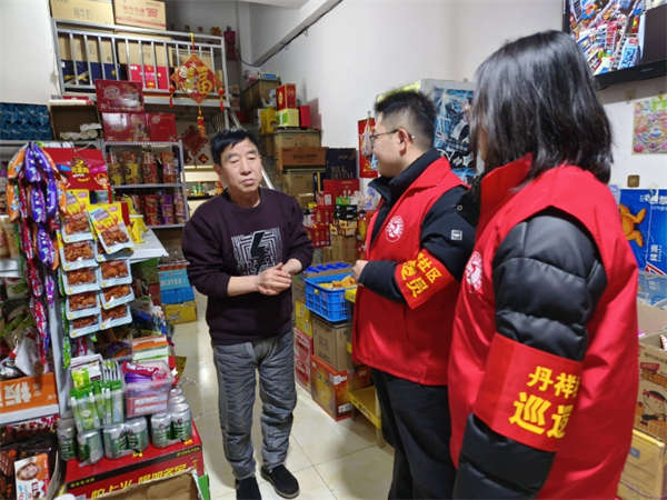 “亲爱的居民朋友们,欢度春节,勿忘安全。请在指定区域规范燃放烟花爆竹,切勿在楼道、阳台存放。为了您和家人的幸福安全,请自觉遵守规定,共同守护小区的平安祥和……”小区出入口的喇叭循环播放着温馨提示声声入耳、句句暖心。巡逻队员小刘感慨说道:“这喇叭一响,大家的安全弦就绷紧了,我们晚上巡逻时心里也更有底气。”这是丹顺社区打出的“硬举措+软宣传”组合拳。除了常态化夜间巡逻,社区在每个单元门口张贴了《安全文明燃放烟花爆竹倡议书》,引导大家文明过节。小区主干道上,一条条“安全燃放千家乐,违规操作万家忧”宣传条幅醒目悬挂,成为新春佳节里一道守护平安的独特风景。“现在社区的喇叭天天讲,条幅随处见,晚上还有工作人员巡逻,住着特别踏实。”正在小区里散步的王阿姨笑着对巡逻队员说道,“昨晚看到隔壁家小伙子想在楼下燃放鞭炮,我还主动上前劝导,如今我们居民都是社区安全宣传的一员了。”同样,丹祥社区的烟花爆竹排查宣传工作也开展得有声有色、新意十足。